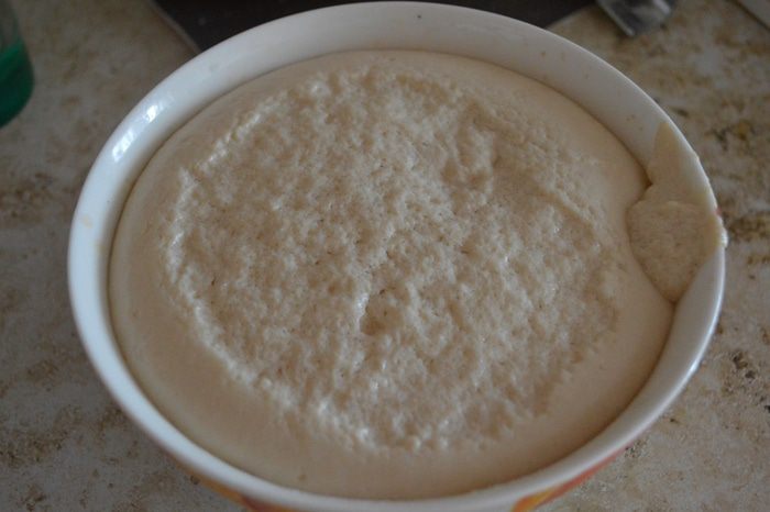 У меня ушло 15-20 минут на то, чтобы опара увеличилась в два раза. Прошу извинения за испорченную шапочку, она пристала к полотенцу.