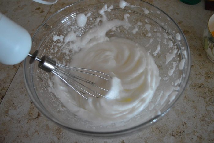 Белки взбиваем в густую пену.