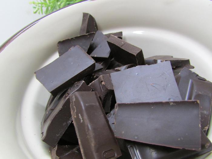 Шоколад разломать на маленькие кусочки. Растопить на водяной бане.