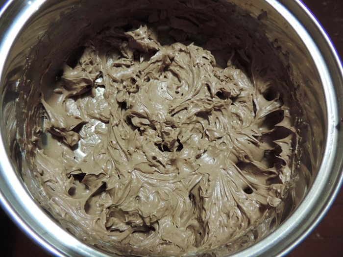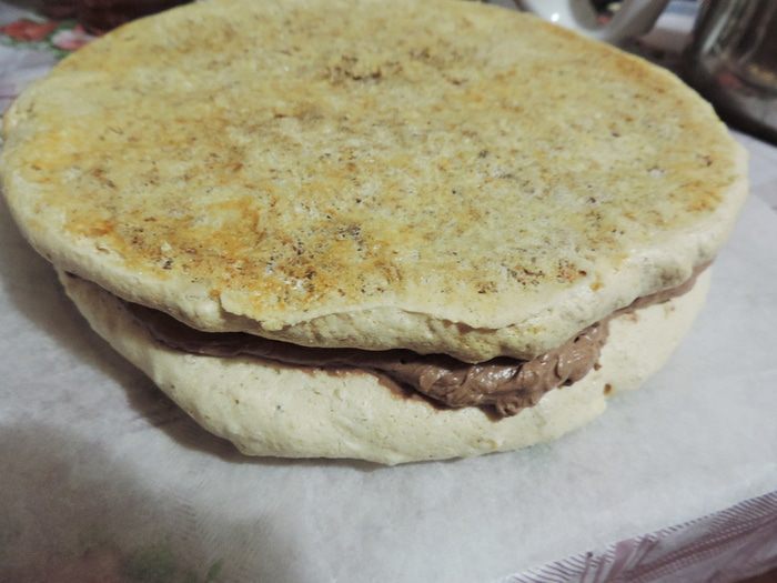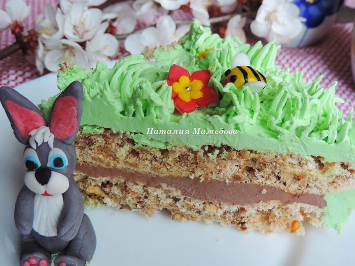 Этот торт я посвятила Иннусе только внешне, поскольку оформление для нее главнее внутреннего содержания. А сделала я его со своим любимым сочетанием: хрустящее безе, грецкие орехи, арахис и шоколадный крем.