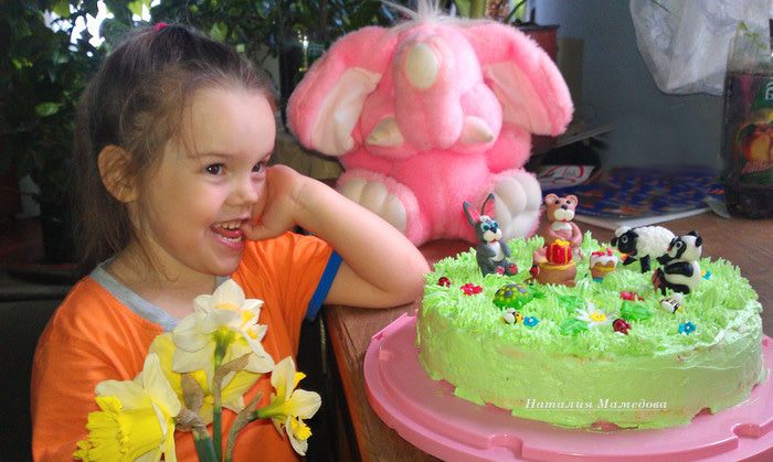 Именнинница была в восторге, правда сначала она съела зверюшек и лишь на следующий день согласилась попробовать сам торт, так что мой расчет оказался верным