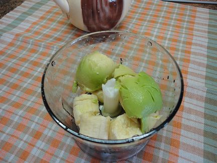 Здесь еще проще - мякоть банана и авокадо укладываем в блендер, выжимаем сок лайма и пюрируем.