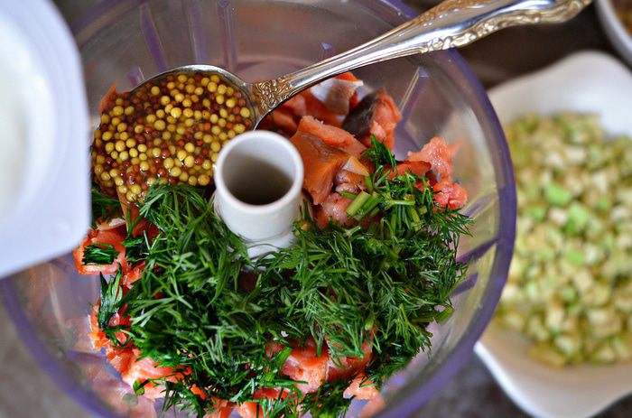 В блендере измельчить нарезанную ломтиками форель и все перечисленные ингредиенты для соуса. По желанию возможно измельчить не до однородного состояния - в соусе могут чувствоваться кусочки рыбы.