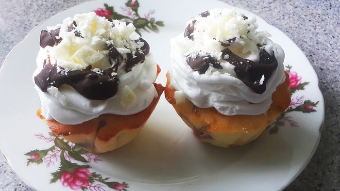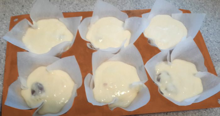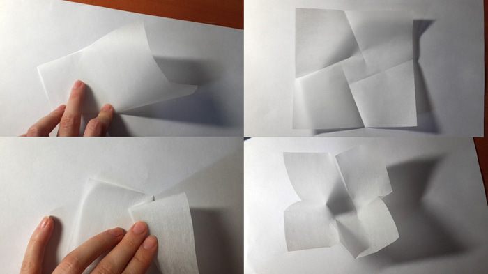 Тесто можно выложить в силиконовые формы, смазанные сливочным маслом и присыпанные мукой или в симпатичные конвертики из пергамента (обязательно с жиронепроницаемой пропиткой). Конвертики я делаю так: вырезаю квадраты 13,5*13,5 см. Складываю каждую сторону почти пополам, но при этом левый угол увожу вбок, чтобы получился из него равнобедренный треугольник. Провожу пальцем до середины диагонали. Когда сделали подобным образом для всех сторон, увидим в центре квадрат. Из каждого его угла нужно сформировать загиб – треугольник, ширина основания которого 2 см.