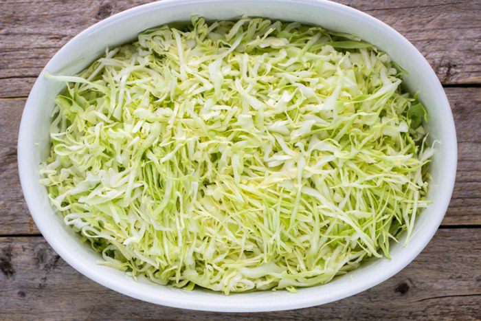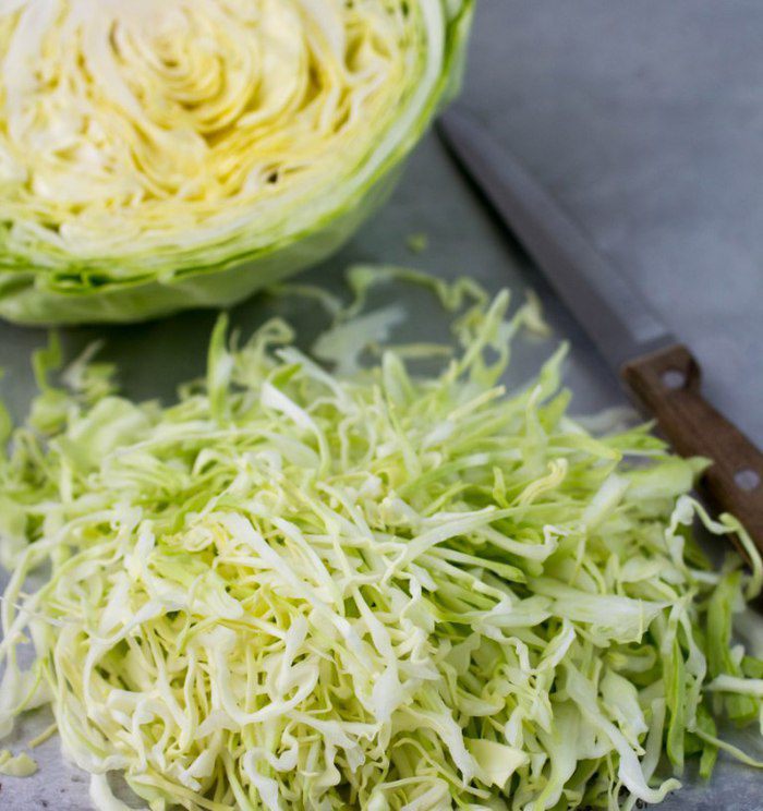 Капусту мелко нашинковать.