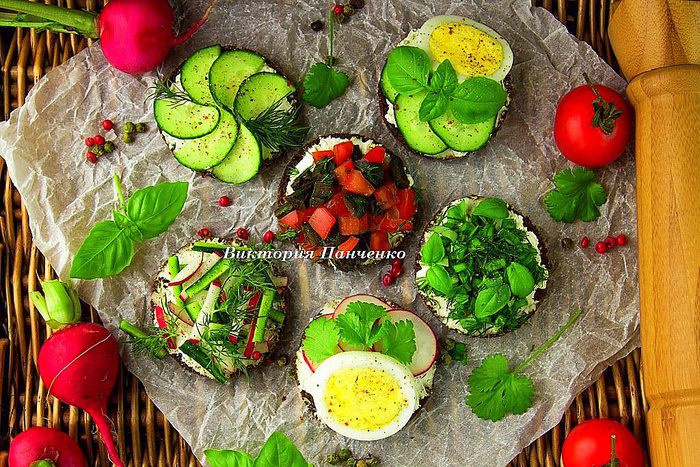 А теперь делаем бутерброды с редисом, яйцом и кинзой.