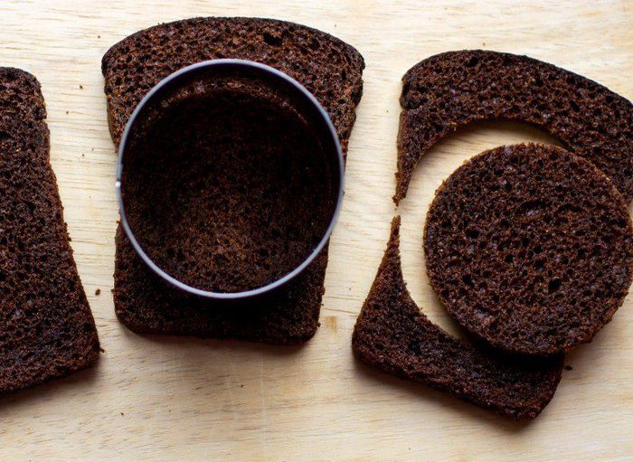 При помощи вырубки сделать заготовки из хлеба. Это могут быть круги, квадраты, ромбы, сердечки.