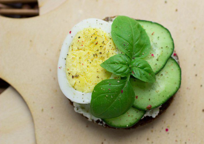 С яйцом, огурцом и базиликом.