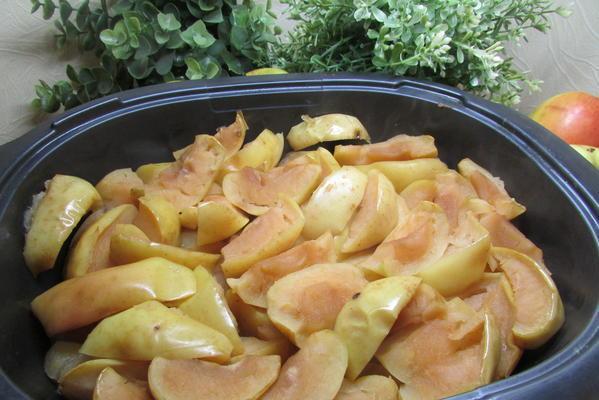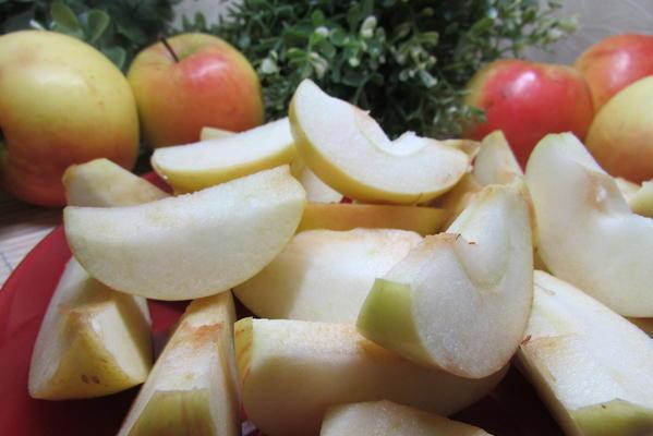 Яблоки почистить, разрезать на две или четыре части, удалить сердцевину. Кожицу не снимать.