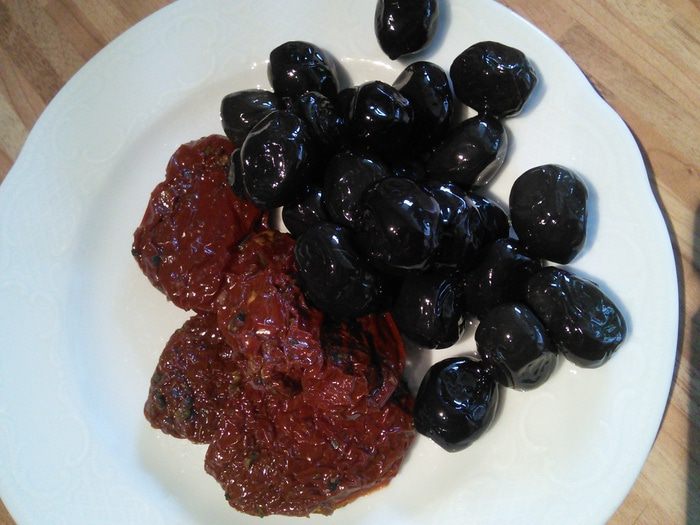 Духовку разогреваем до 210°. Оливки и помидоры мелко рубим.