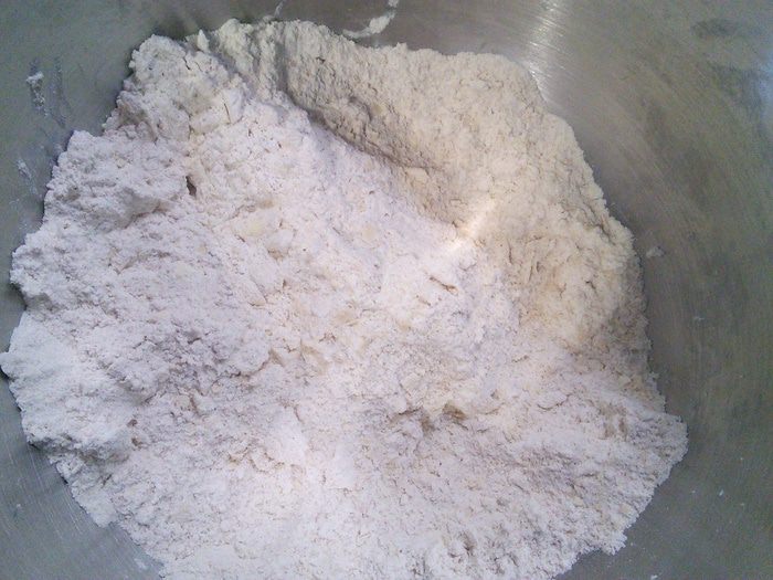 Муку смешиваем с разрыхлителем, кайенским перцем, солью. Масло (холодное) режем на кусочки и руками или в блендере смешиваем масло с мучной смесью, образуя крошку. Подмешать с натёртым на терке сыром, желательно пикантных сортов.