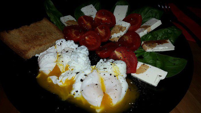Приготовить яйца-пашот, выложить на тарелки, надрезать, посолить и поперчить по вкусу.