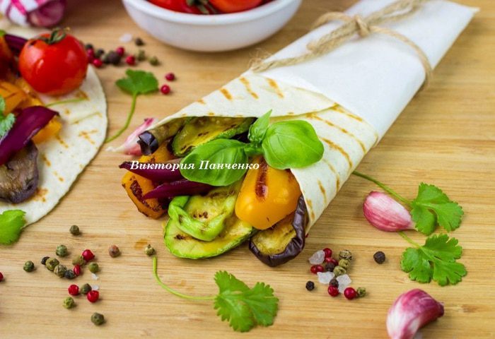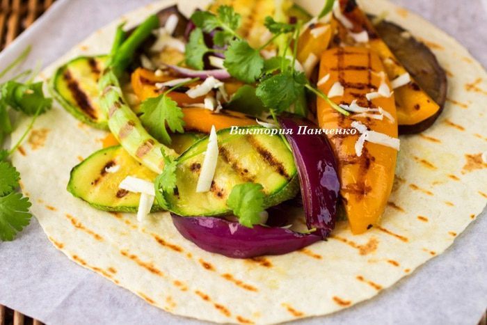 Все овощи обжарить на раскаленной сковороде-гриль по 30-50 сек с каждой стороны либо запечь в духовке.