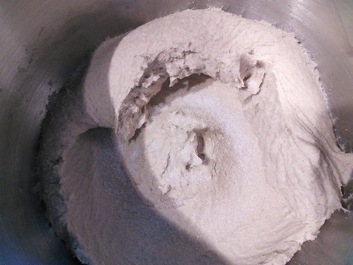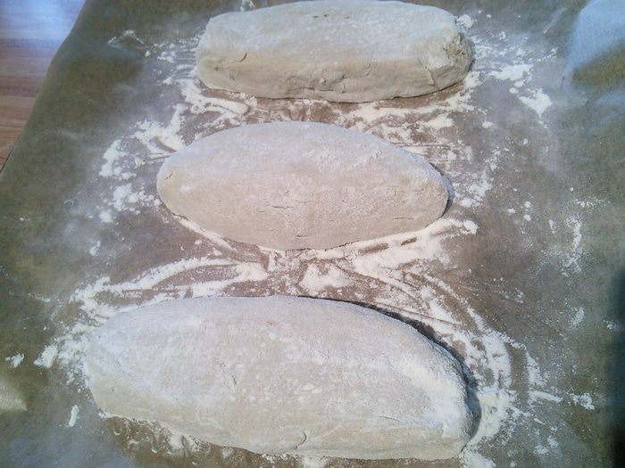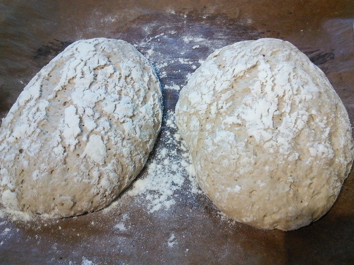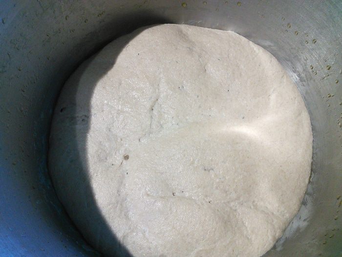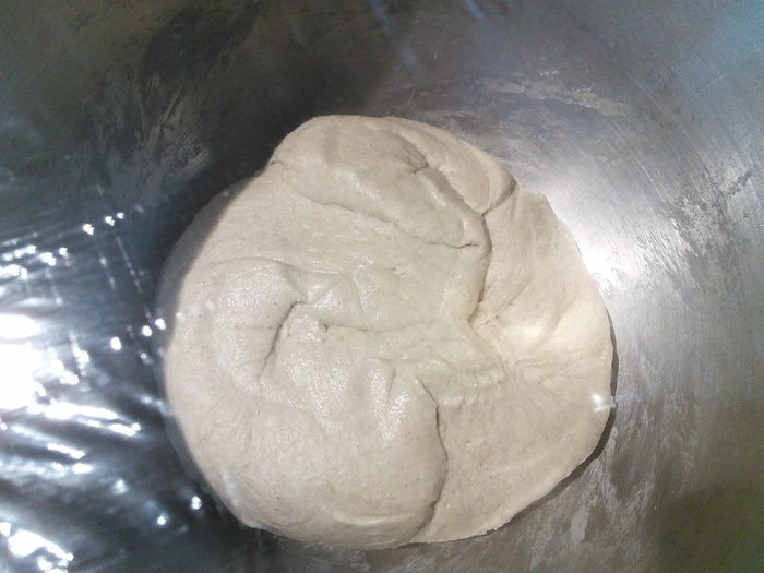 Переложите заготовки на расстоянии друг от друга на противень, выложенный бумагой (не более 2 штук на противень), придайте ему желаемую форму, посыпьте мукой, накройте плёнкой или чистым полотенцем и поставьте в тёплую духовку ( 25°) на 1,5 часа на расстойку. Так поднялось тесто после расстойки.