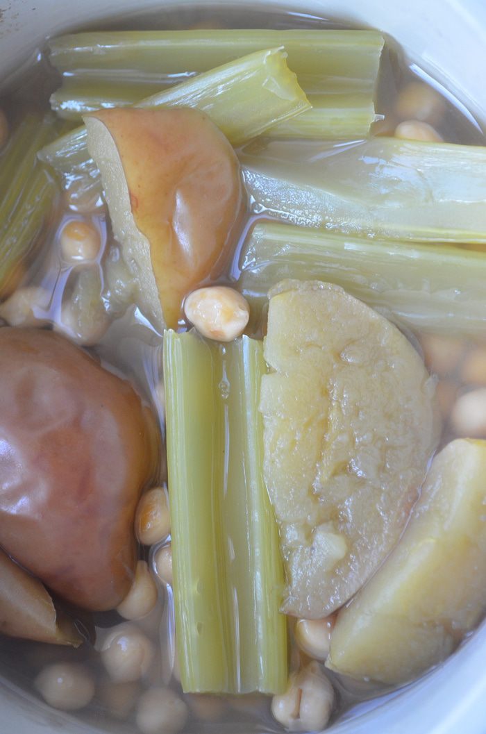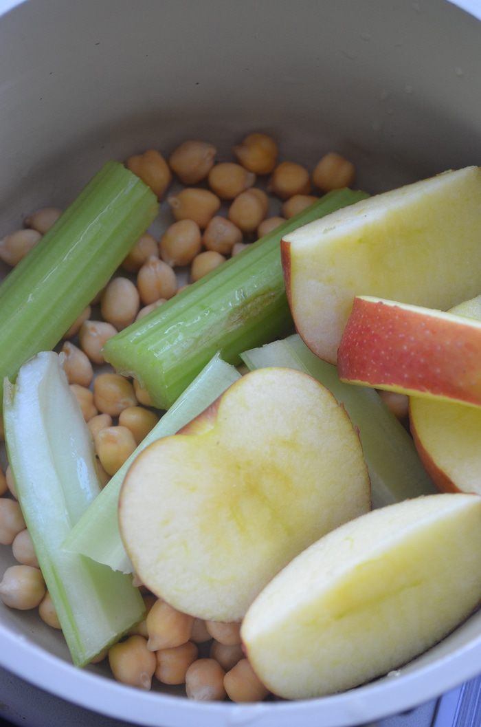 Варим до готовности. Когда нут станет совсем мягким, убираем сельдерей, сливаем часть жидкости.