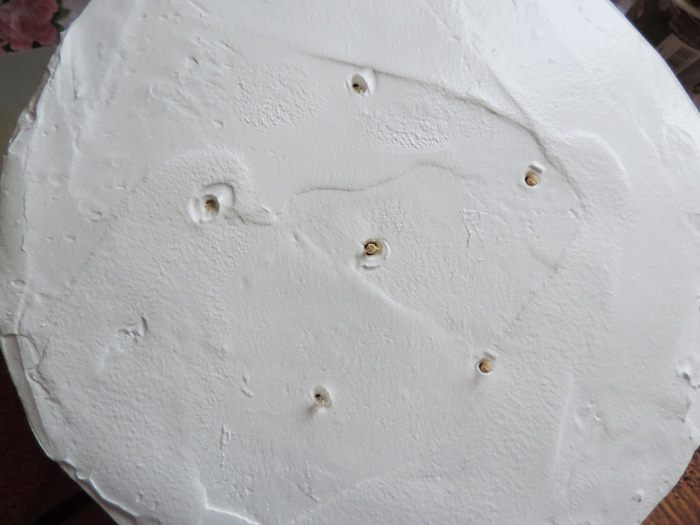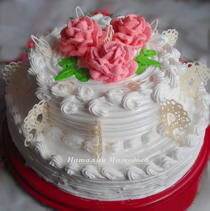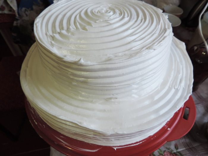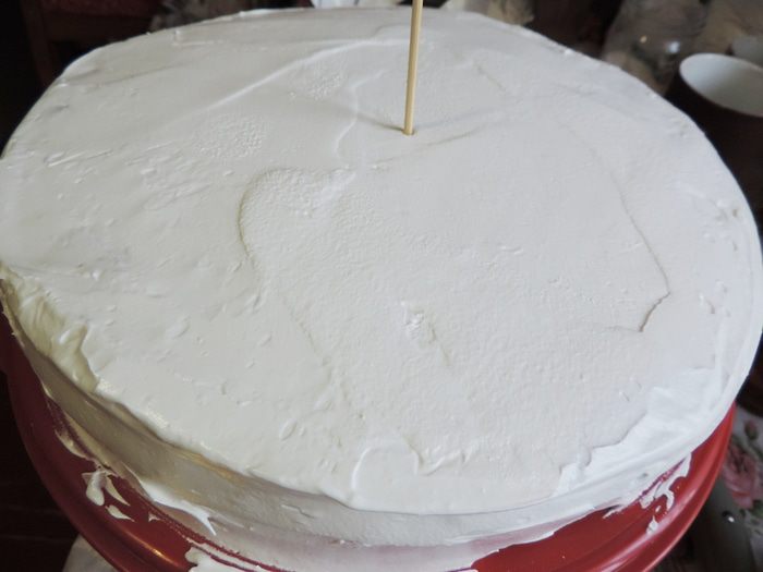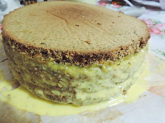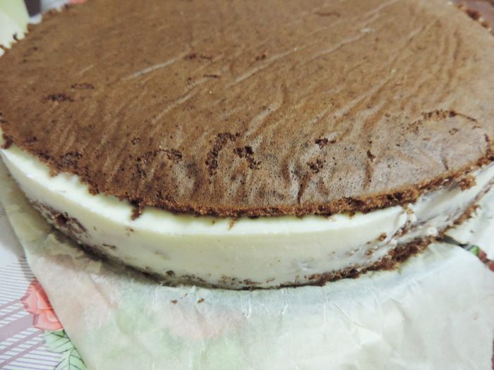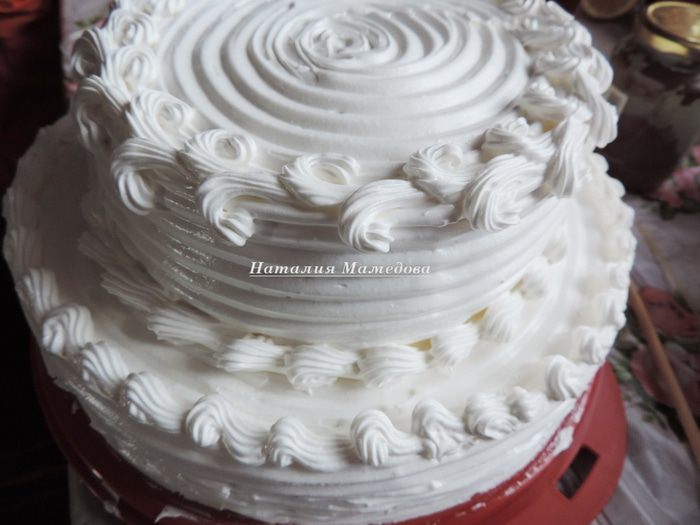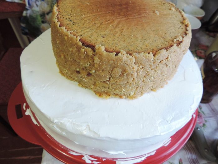 Поскольку украшать торт я решила белковым заварным кремом, а он не дружит с суфле и влажными кремами, а проплешин на боках торта мне очень не хотелось, бока приготовленных тортиков я решила покрыть массой типа пирожного "картошка".