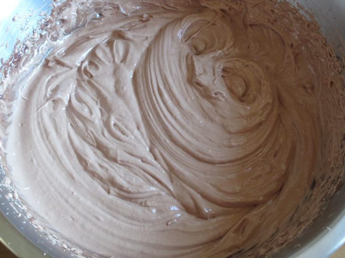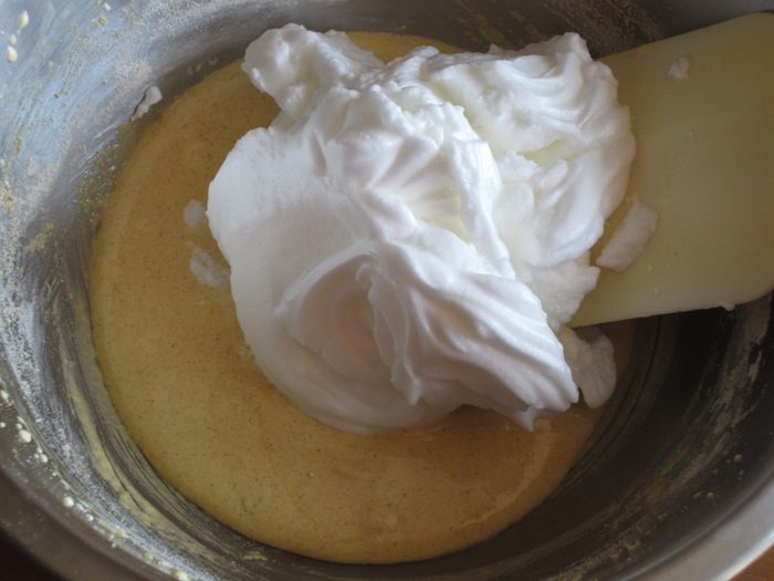 Взбить белки до устойчивых пиков и аккуратными движениями перемешать.