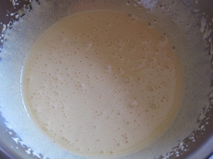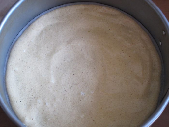 Для бисквита взбить желтки 5 минут, постепенно добавляя сахар.