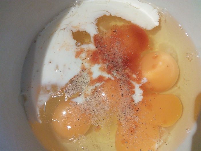 Яйца взболтайте с молоком /сливками/водой, посолите, поперчите , добавьте табаско. Таким образом мы получили лизьен.