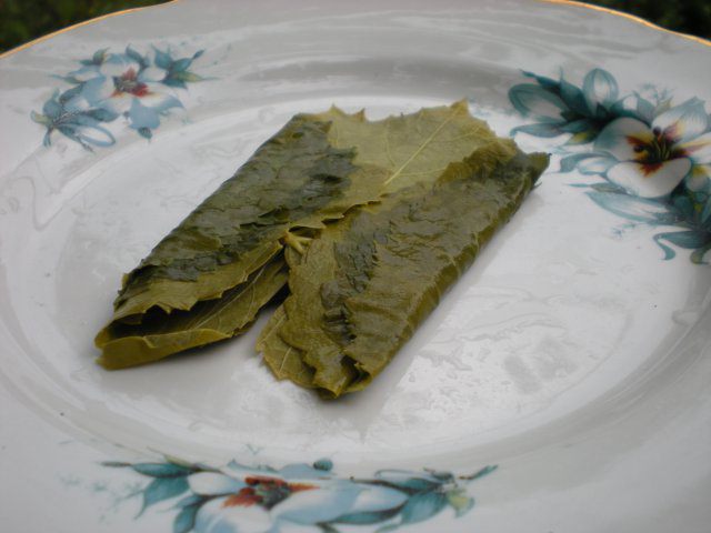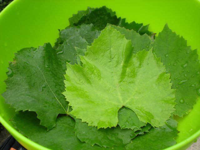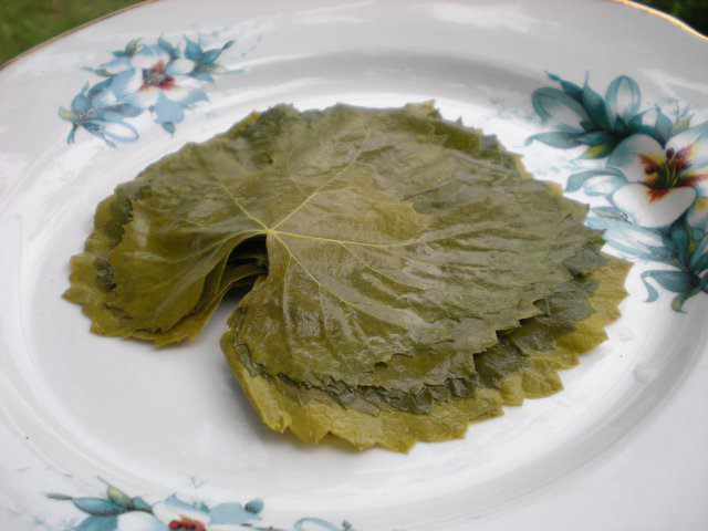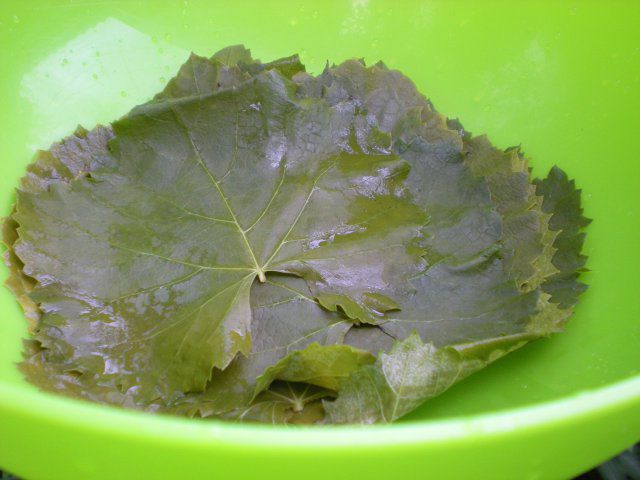 Виноградные листья промываем, вырезаем жесткую ножку.