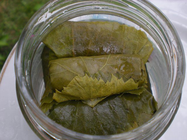 Наполняем виноградными конвертиками пол литровую банку, добавляем соль и уксус и заливаем кипящей водой. Укупориваем банку простерилизованной крышкой и храним, как обычную консервацию.