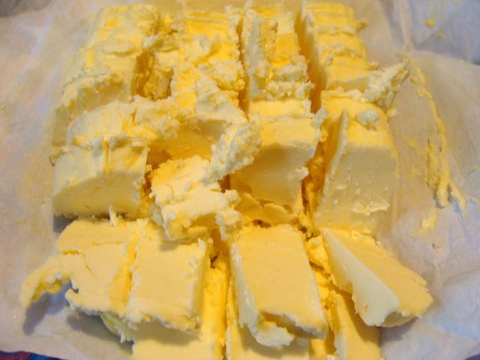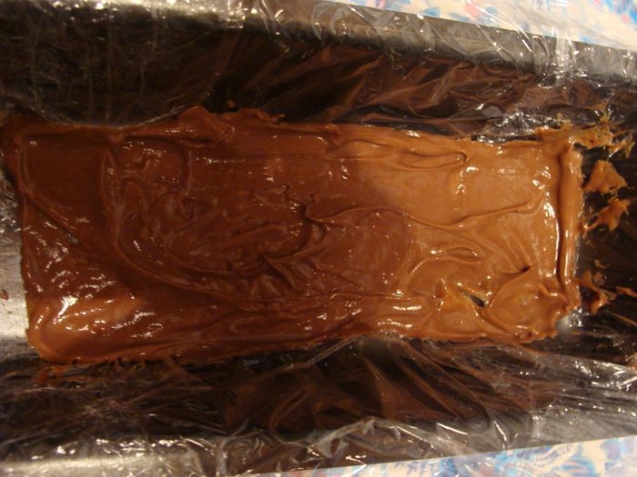 Завернуть пленку, придать полену круглую форму и положить в холодильник на ночь.