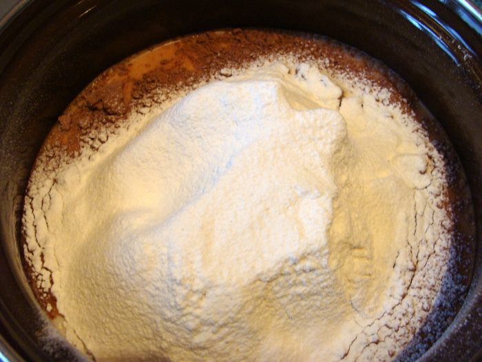 В молоко высыпать все сухие ингредиенты.