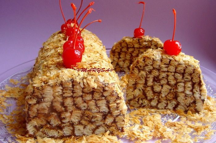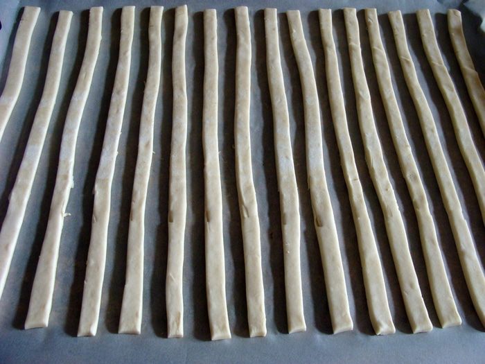 -Чтобы тортик был сочным, очень важно порезать тесто на узенькие полосочки, у меня меньше 1 см шириной.