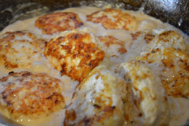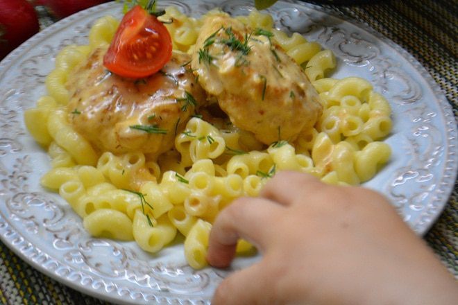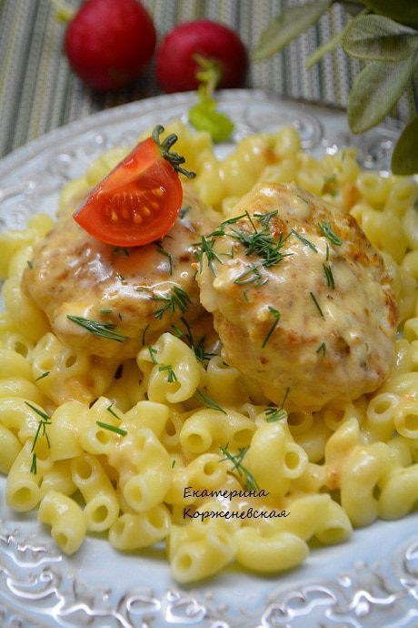 Я люблю подавать их с макарошками, полив сливочным соусом. Напоминает пасту...