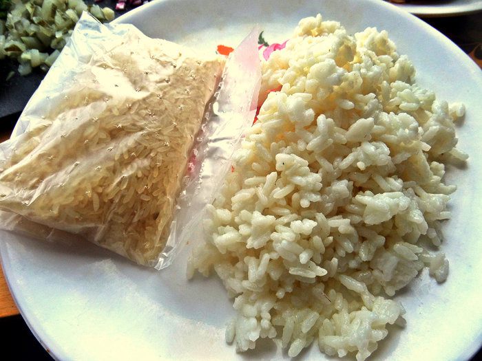 Пакетик риса отварить.