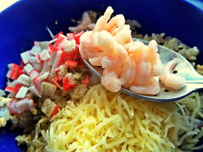 Немного майонеза для связки и перемешать начинку.