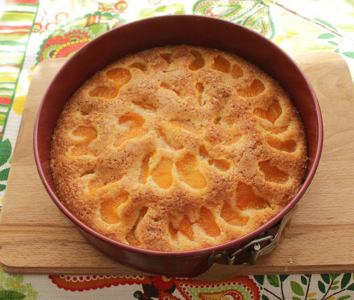 "Подчищала закрома", нашла баночку консервированных мандаринов, не проподать же добру! Пирог немного не по сезону, но у нас шел снег и этот солнечный, яркий пирог пришелся ко двору! К тому же он необычайно хорош!