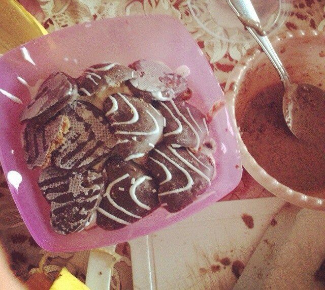 Достаем тортик из холодильника, переворачиваем нашу мисочку и аккуратно достаем торт так, чтобы он по возможности не потерял своей формы (поэтому желательно подольше подержать его в холодильнике).