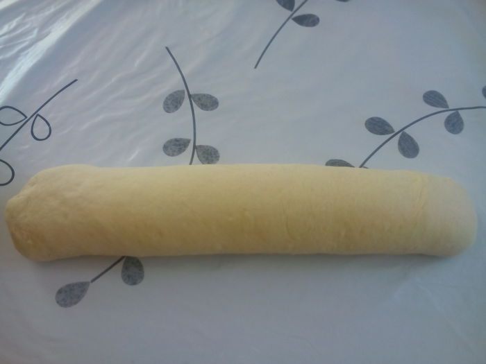 Свернуть рулетом, края подогнув во внутрь. Накрыть легким полотенцем и оставить на 25 минут.