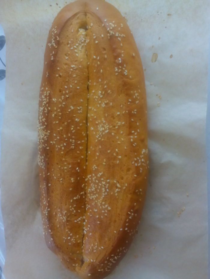 После того как подойдет, смазать молоком и сделать посередине разрез, глубиной 1 см. Опять смазать молоком и посыпать кунжутом.