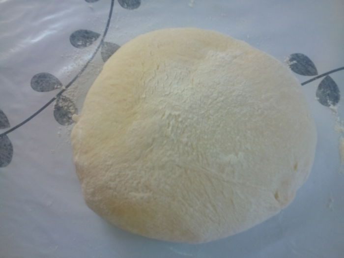 Месить пока тесто не станет гладким и не будет приставать к рукам. Накрыть и оставить на минут 40-50, чтобы подошло.