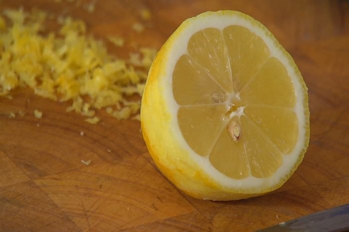 Цедру лимона натереть на мелкой терке, из половинки лимона выжать сок.