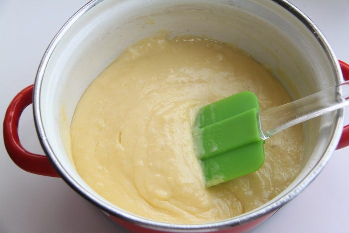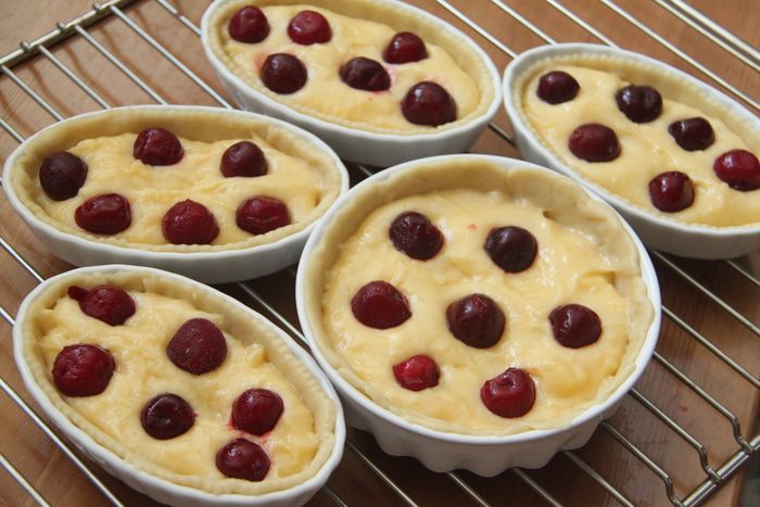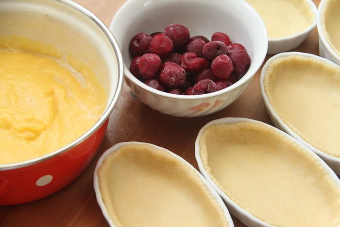 Тесто разделить на 5 частей. Каждую часть тонко раскатать, выложить в форму, края подровнять ножом для равиоли. В зависимости от размеров формы и от толщины теста может получится большее или меньшее количество основ для пирожных. Заготовки убрать в холодильник.