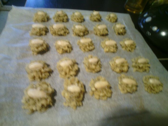 В центр по желанию положить целый миндаль. Выпекать в заранее разогретой духовке 180*С 20 минут (смотрите по вашей духовке) до золотистого цвета.