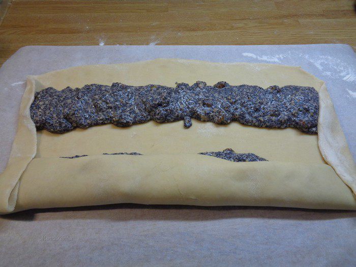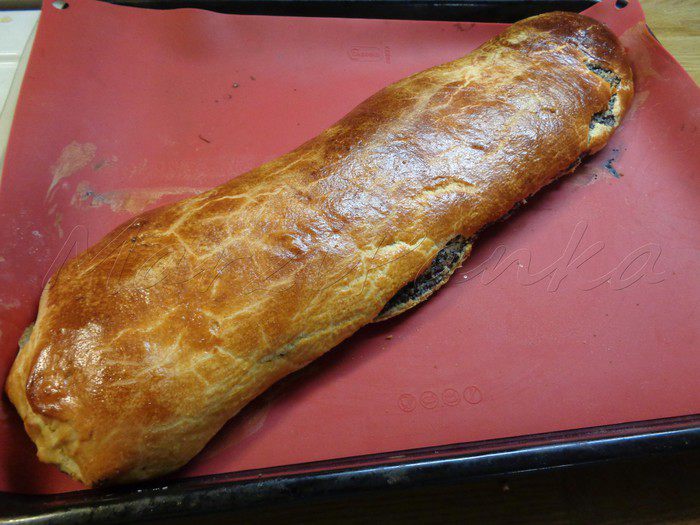 Я использовала меньше мака, чем указано в рецепте. Так вышло, его просто напросто не хватило. Берите полное количество мака, это так вкусно! Данного количества продуктов достоточно на 2 маленьких или 1 большой рулет.