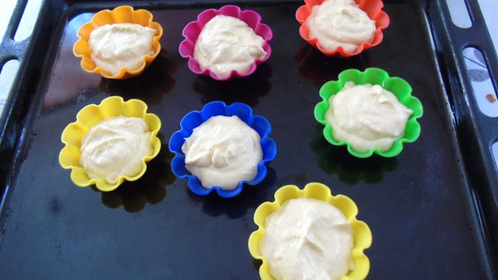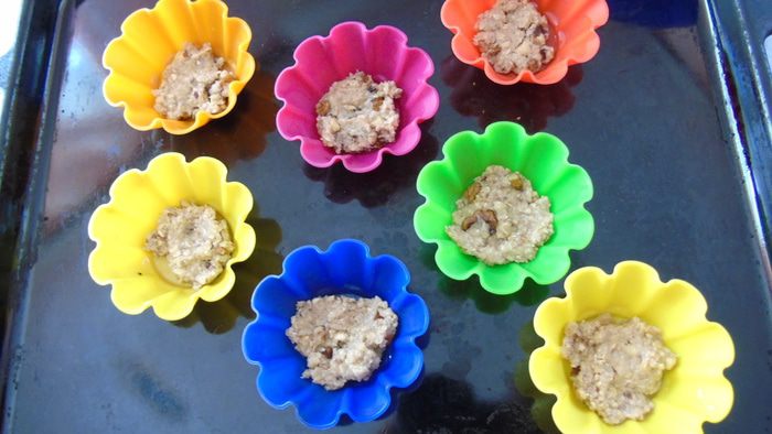 В формочки выложить чуть-чуть основы, можно просто выложить в форму диаметром 20 см (не более).