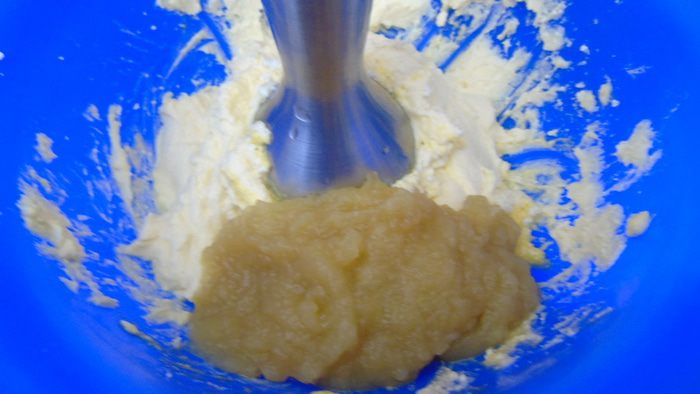 Добавить яблочное пюре и еще раз взбить.