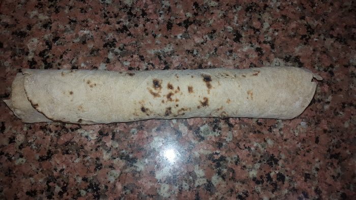 Аккуратно сворачиваем лаваш подгибая нижний край.