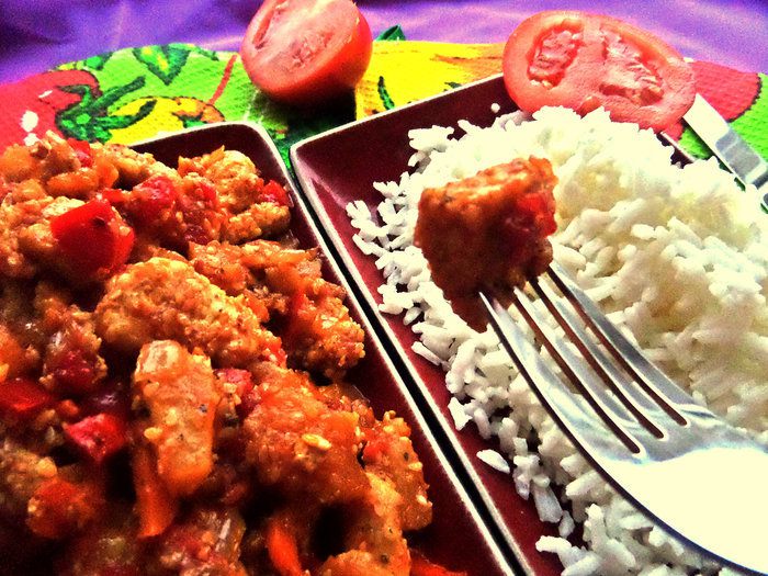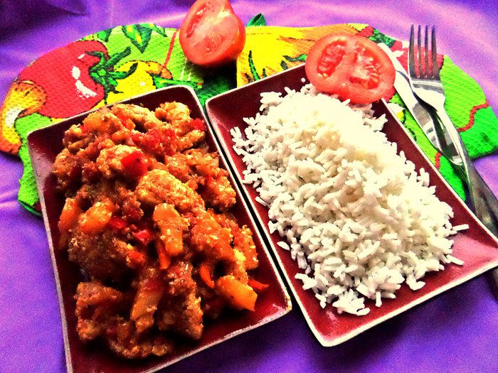 На двоих вполне хватает пакетика риса в качестве гарнира. Вместе с курочкой получается не тяжёлый ужин.