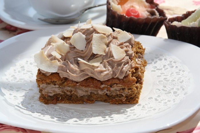 Соединяем желтки с сухими ингредиентами, вымешиваем, а затем добавляем белки. Аккуратно перемешиваем массу. Силиконовый противень 18*20 см смазываем раст.маслом и выливаем тесто. Выпекаем 15 минут при 180С, проверяем на "сухую спичку". Бисквит остужаем и осторожно вынимаем из формы (бисквит капризный, нежный, поэтому извлекать из формы надо аккуратно!).