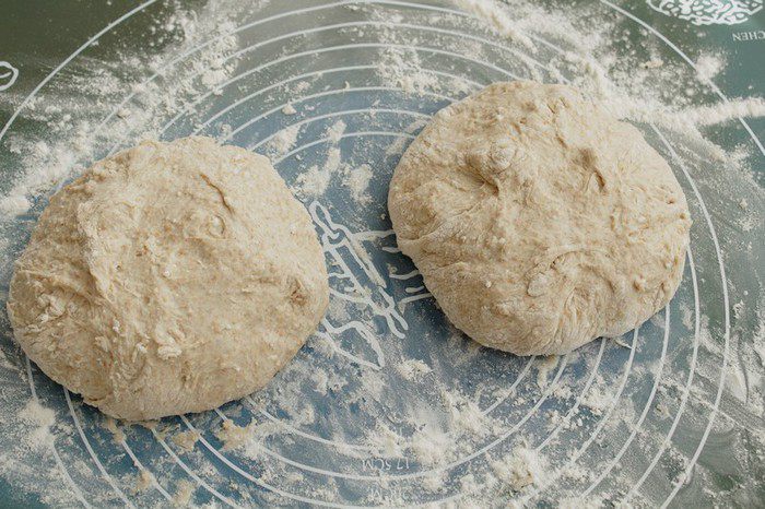 Разделить тесто на 2 части и сформируйте из каждой шар.