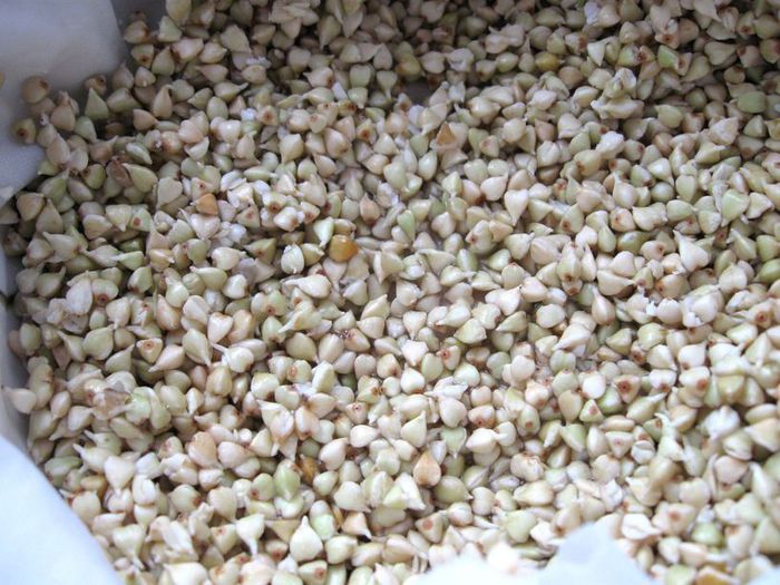 Залить зерна зеленой гречки питьевой водой и забыть о них на 3 – 4 часа. Промыть, завернуть во влажную натуральную ткань, положить в миску или кастрюльку тонким ровным слоем и оставить при комнатной температуре. Для замачивания желательно использовать фарфоровую, глиняную, стеклянную или эмалированную посуду. Если тряпка, в которую вы положили зерна, будет подсыхать, намочите ее еще раз (ткань должна быть все время влажной).