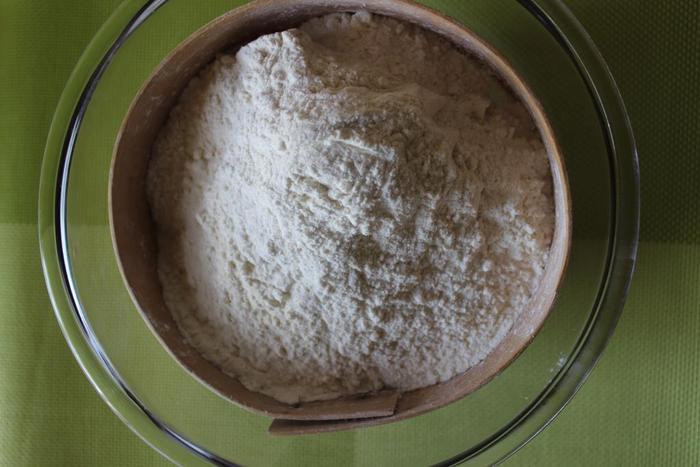Просеять муку с разрыхлителем.