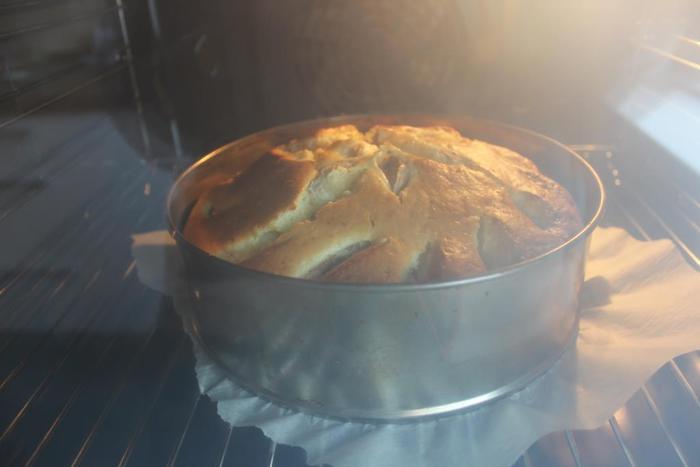 Поставить в разогретую духовку примерно 1 час. Пирог хорошо поднимается и источает обалденный аромат. Готовность проверить шпажкой.