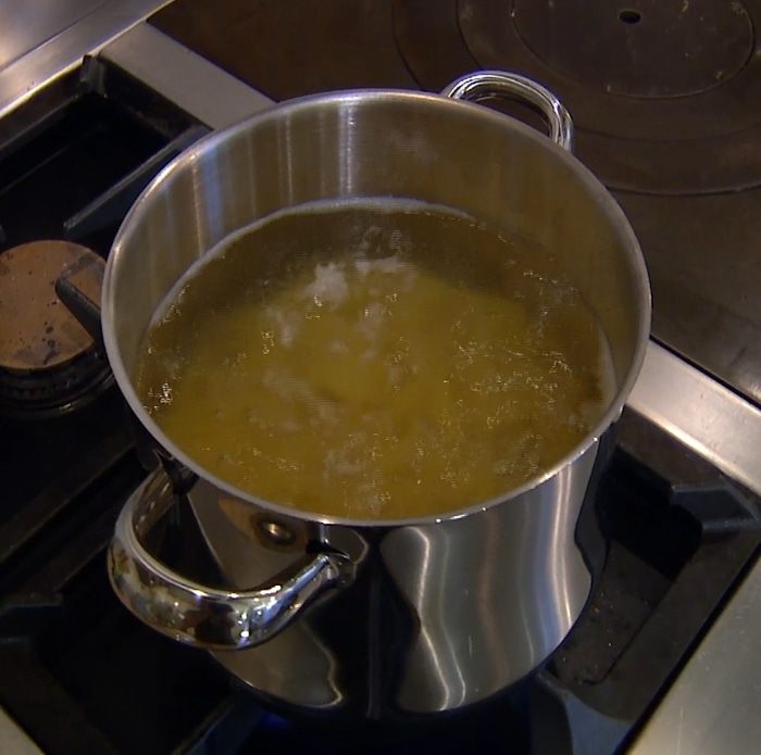 Пенне отварить в подсоленной воде согласно инструкции на упаковке, затем воду слить и сохранить.